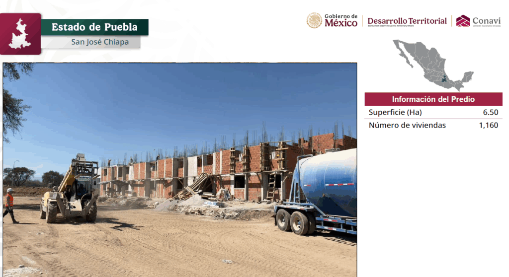 Como parte de las acciones del FOVISSSTE para Vivienda para el Bienestar, en el que construirá 100 mil viviendas, agregó que ya se tienen 30.4 hectáreas para producir vivienda y se tienen listos los terrenos para el inicio de obras en Puebla y Chiapas.