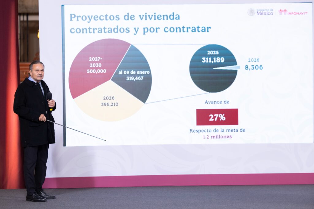 “En lo que llevamos ya de enero hemos sumado 8 mil por lo que al día de hoy tenemos 319 mil viviendas ya contratadas”, dijo en la conferencia de prensa.