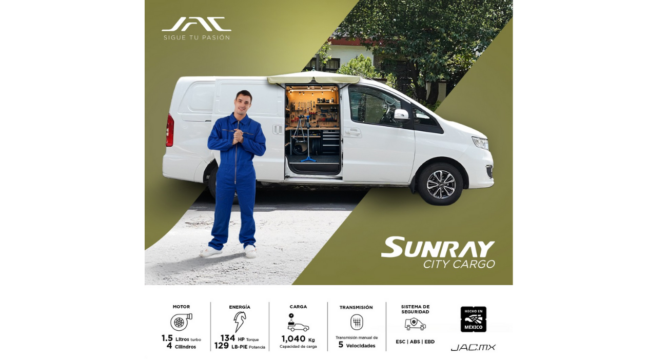 “Con la llegada de Sunray City Cargo fortalecemos nuestra oferta de vehículos comerciales ligeros y reafirmamos nuestra capacidad de adaptarnos a las necesidades del mercado mexicano, donde la logística de última milla juega un papel clave en el crecimiento de miles de negocios”, afirmó Isidoro Massri, Director General de JAC México.