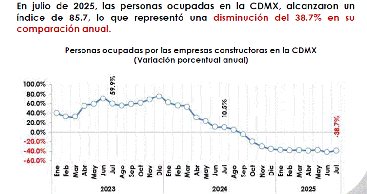 Cae empleo 38% anual en sector construcción: CMIC-CDMX